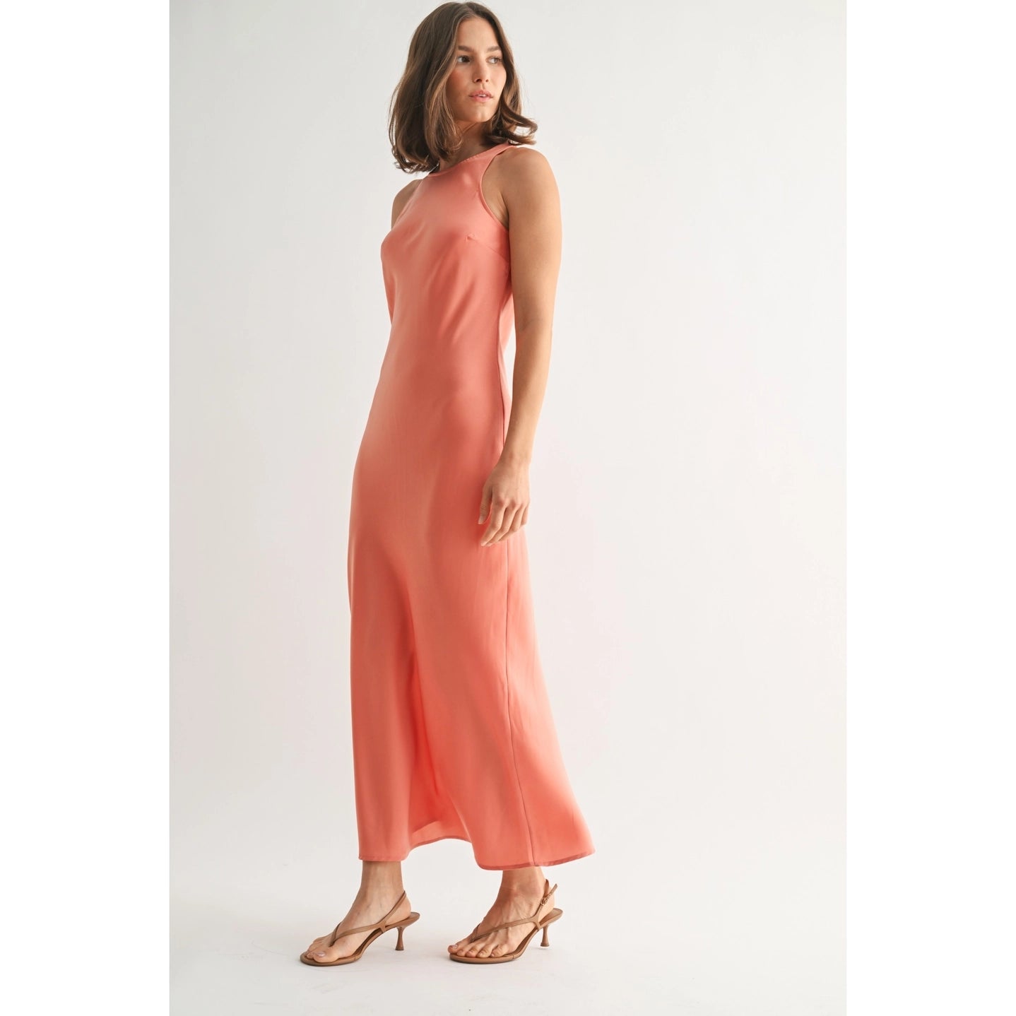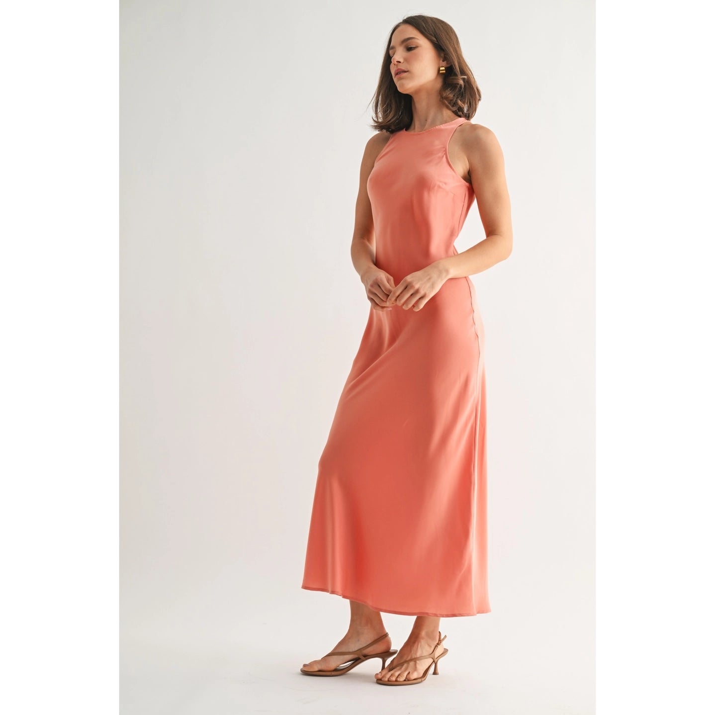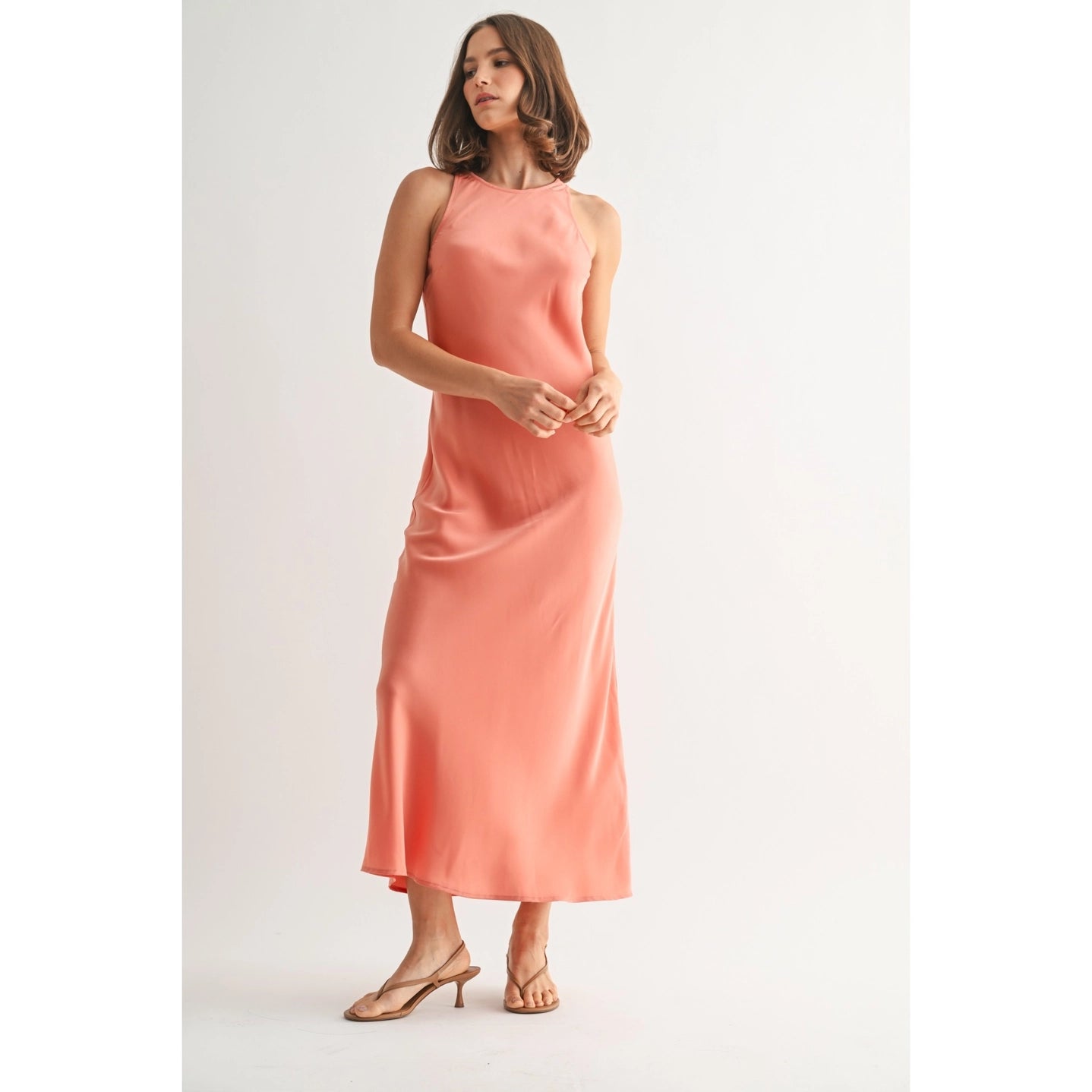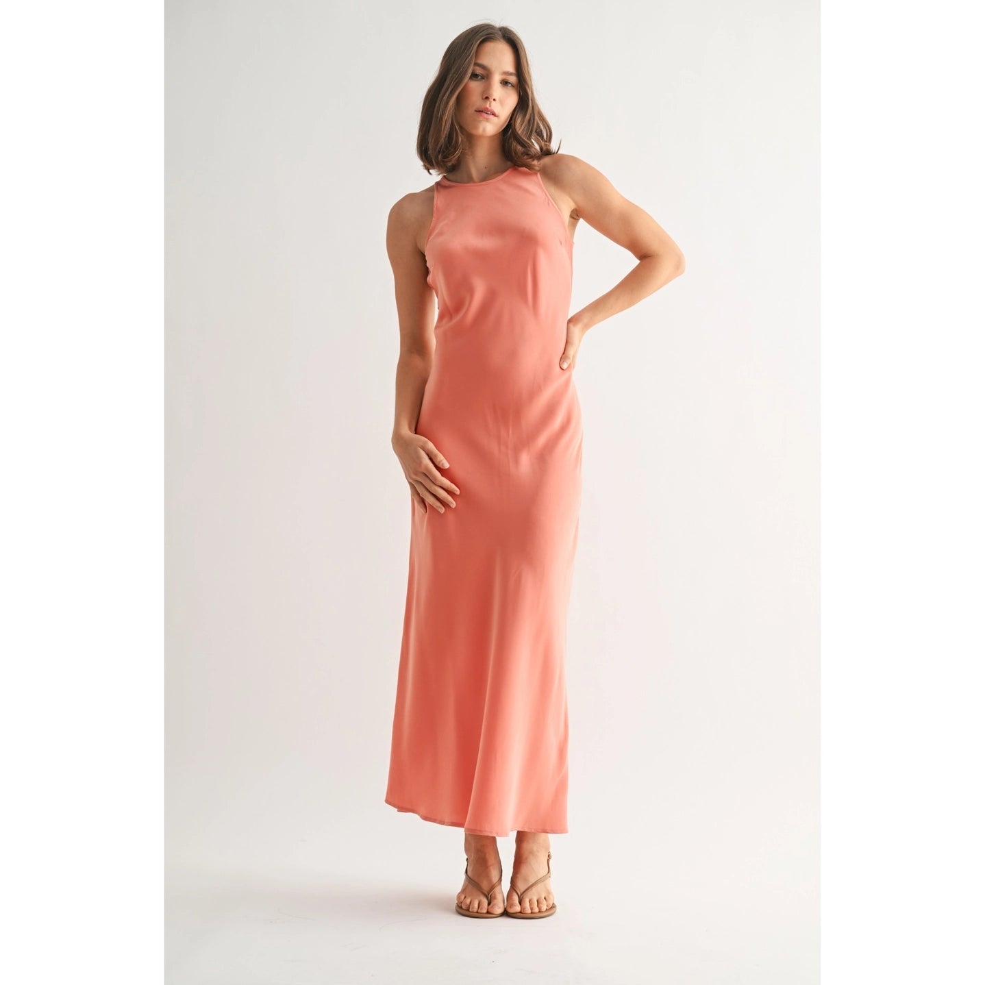 This dress, designed in LA, beautifully captures our dedication to timeless style and quality. Its luxurious satin fabric drapes gracefully, creating a silhouette that's as flattering as it is comfortable. Perfect for both everyday wear and special occasions, this maxi dress is a versatile addition to any woman's wardrobe.