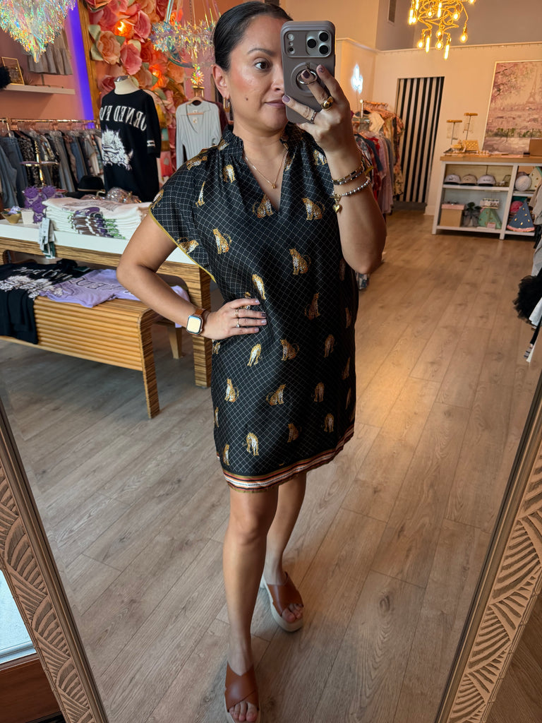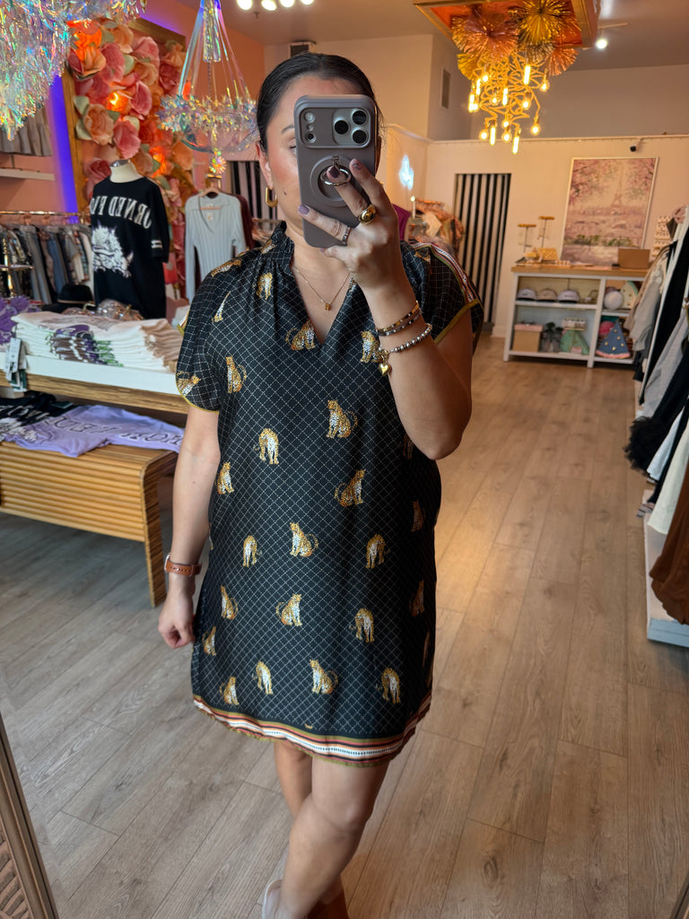 This Leopards Print Mini Dress combines a timeless animal pattern with a soft, lightweight fabric for effortless elegance. Featuring short sleeves and a flattering mini length, it offers a refined silhouette ideal for sophisticated day or evening looks. The comfortable material ensures you stay stylish without compromising on ease.