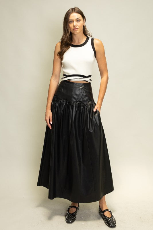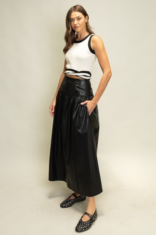 Faux Leather Midi Skirt
