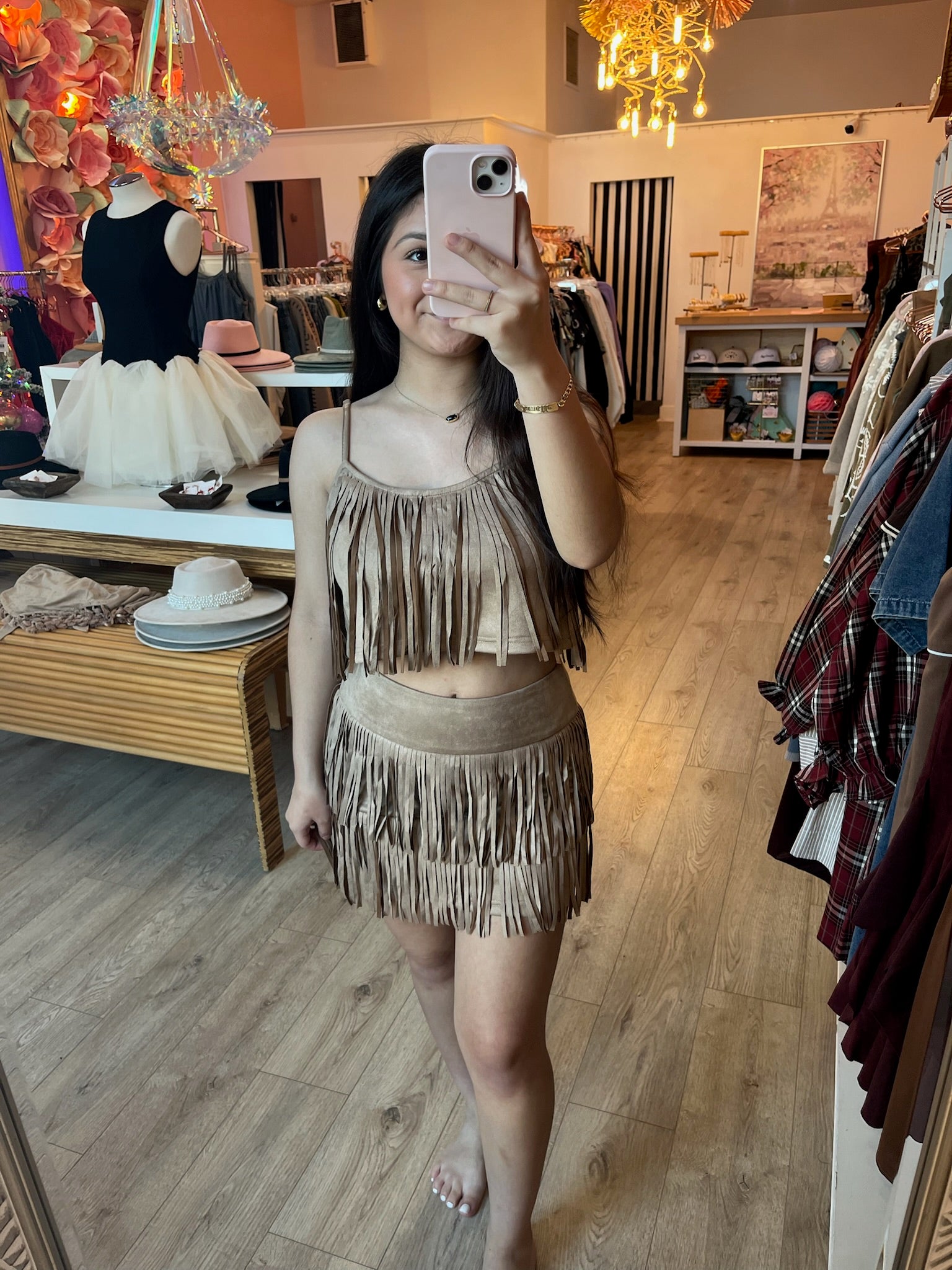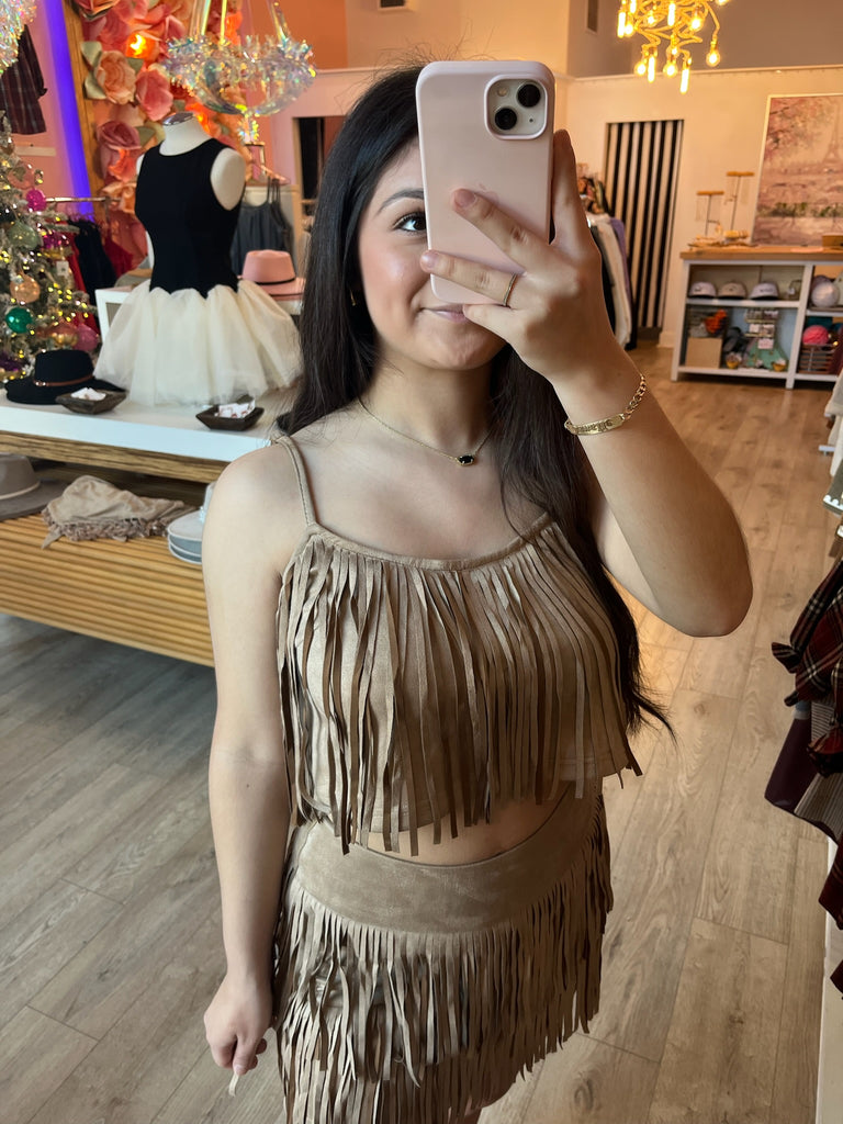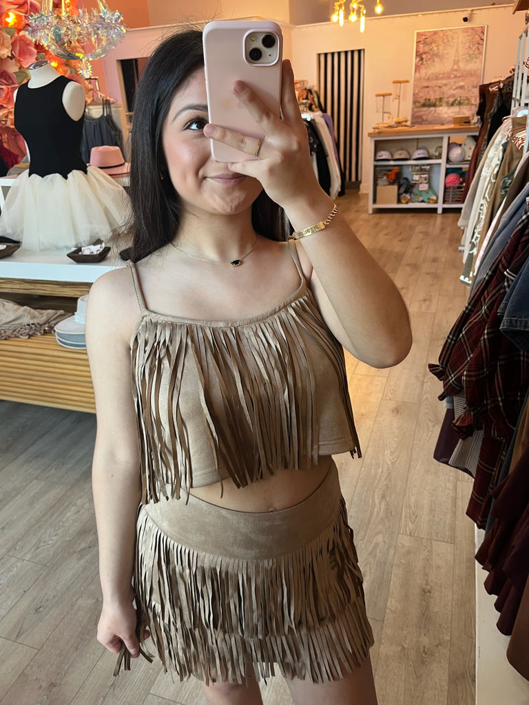 Get your fringe on with this fun western set! Swishy, sassy, and ready to steal the show. Perfect for adding that playful cowgirl edge to any outfit.