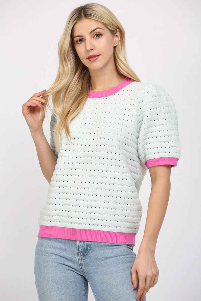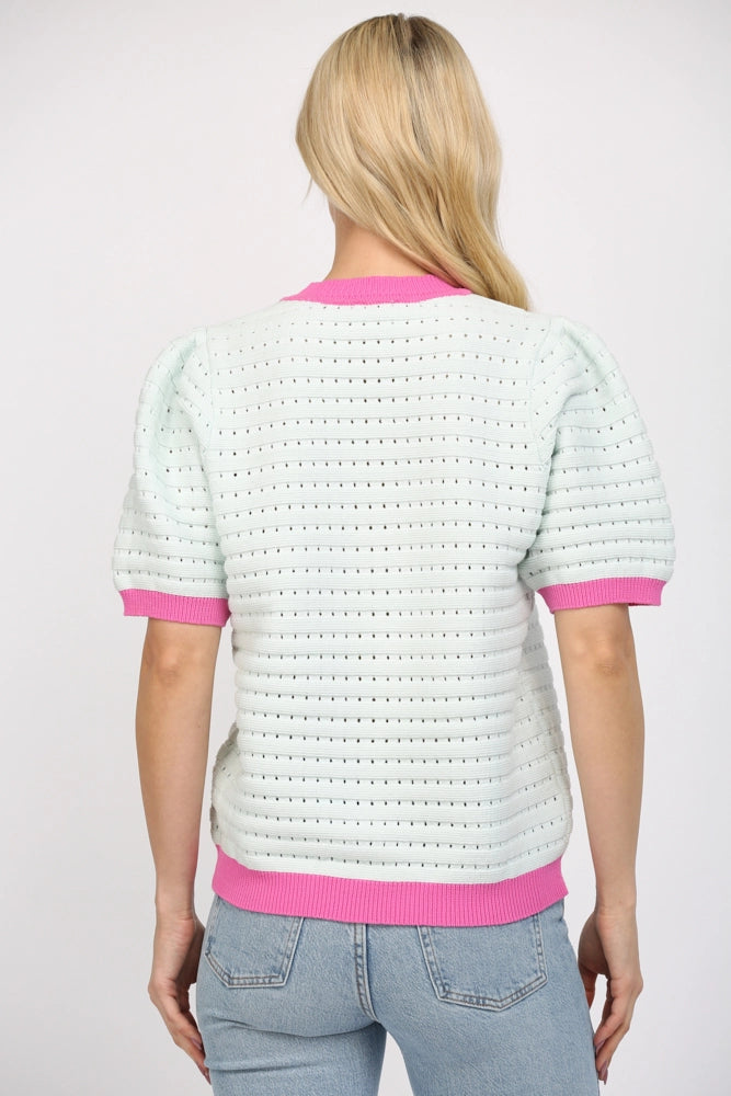Elevate your everyday wardrobe with the Kiki Sweater, a timeless knit piece that blends comfort with contemporary style. Crafted in a rich blue with charming pink trim detailing, this sweater offers versatile appeal for any season. The soft knit fabric provides warmth and breathability, while the thoughtful color contrast adds visual interest to casual outfits and layered looks alike. Perfect for transitional weather or cozy indoor moments, the Kiki Sweater is the essential piece you'll reach for again and again.