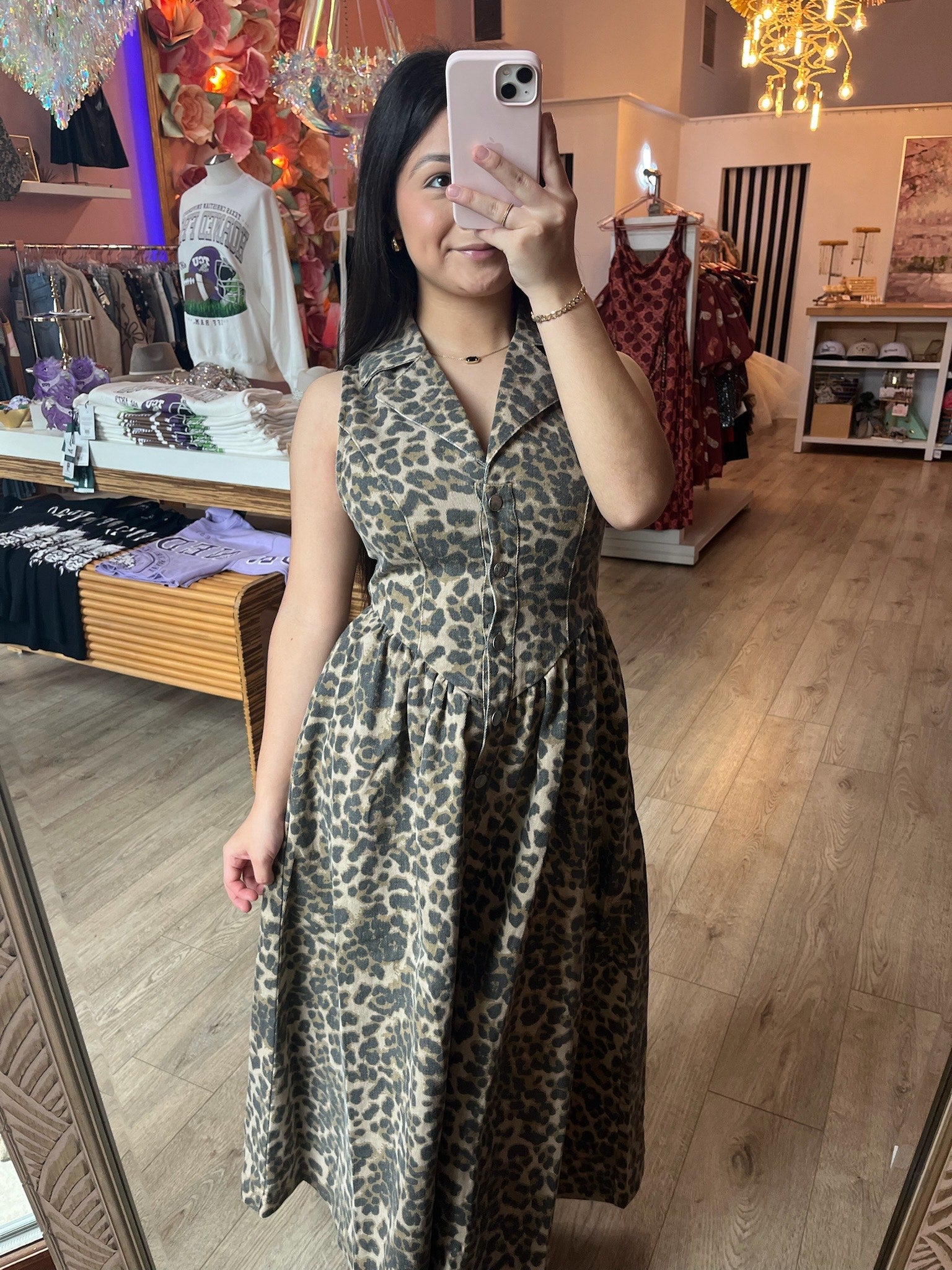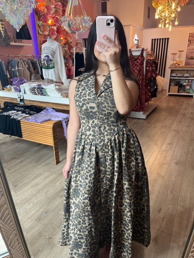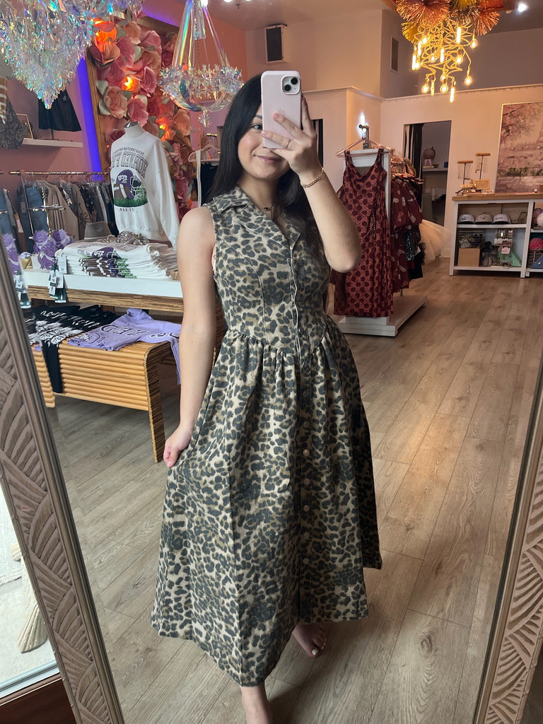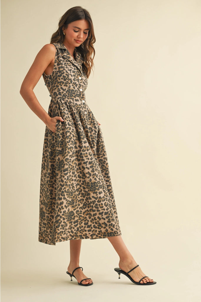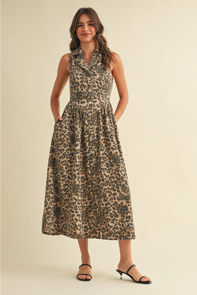 Meet Maxine Maxi—the dress that says you've got style and a sense of humor. This leopard print stunner brings the fun with its bold, unmistakable pattern that turns heads wherever you go. Flowy, flattering, and unapologetically fierce, it's the kind of piece that makes getting dressed feel like an adventure. Perfect for anyone ready to embrace their wild side with a wink and a smile. Because life's too short for boring outfits.